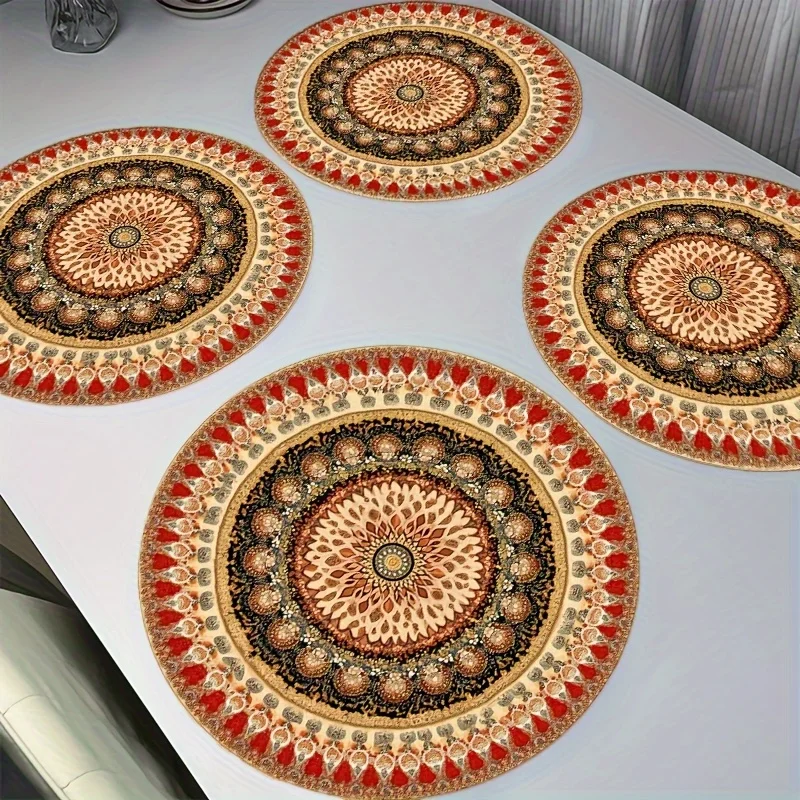 VIKAMA 4 Stück exotische Mandala-Kunst-Tischsets, zeremonielle Tischdekoration, Zubehör, Bohemian-Stil, Heimdekoration, Thema