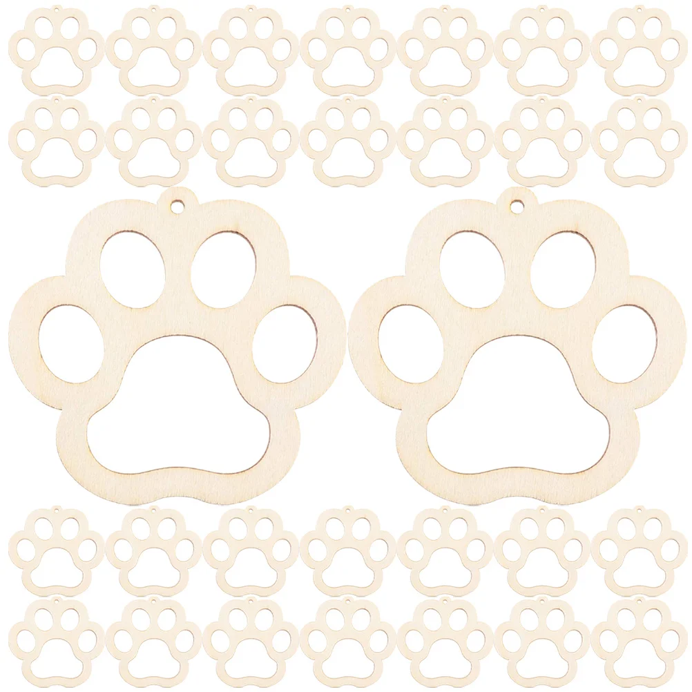 30 Stück hölzerne Hundepfoten-Ausschnitte, unvollendete Naturholzscheiben für DIY-Handwerk, Malerei, Graffiti-Dekor, Haustier-Thema, handgefertigte Anhänger