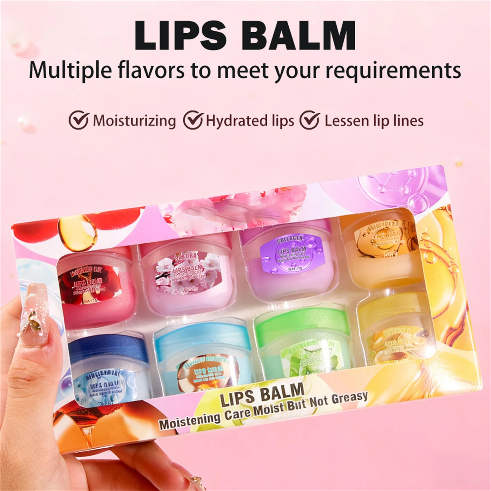 Lippenpflege-Set: 8-teiliges Set mit Fruchtgeschmack-Lippenmasken für intensive Feuchtigkeit, 4-in-1-Behandlung zur Heilung trockener Haut, für glatte Lippen