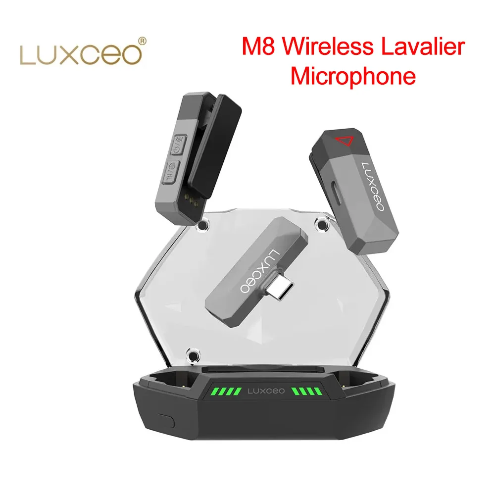 LUXCEO M8 Kabelloses Lavalier-Mikrofon für iPhone und Android mit Ladehülle am Ansteckmikrofon für Audio- und Videoaufnahmen, Interview