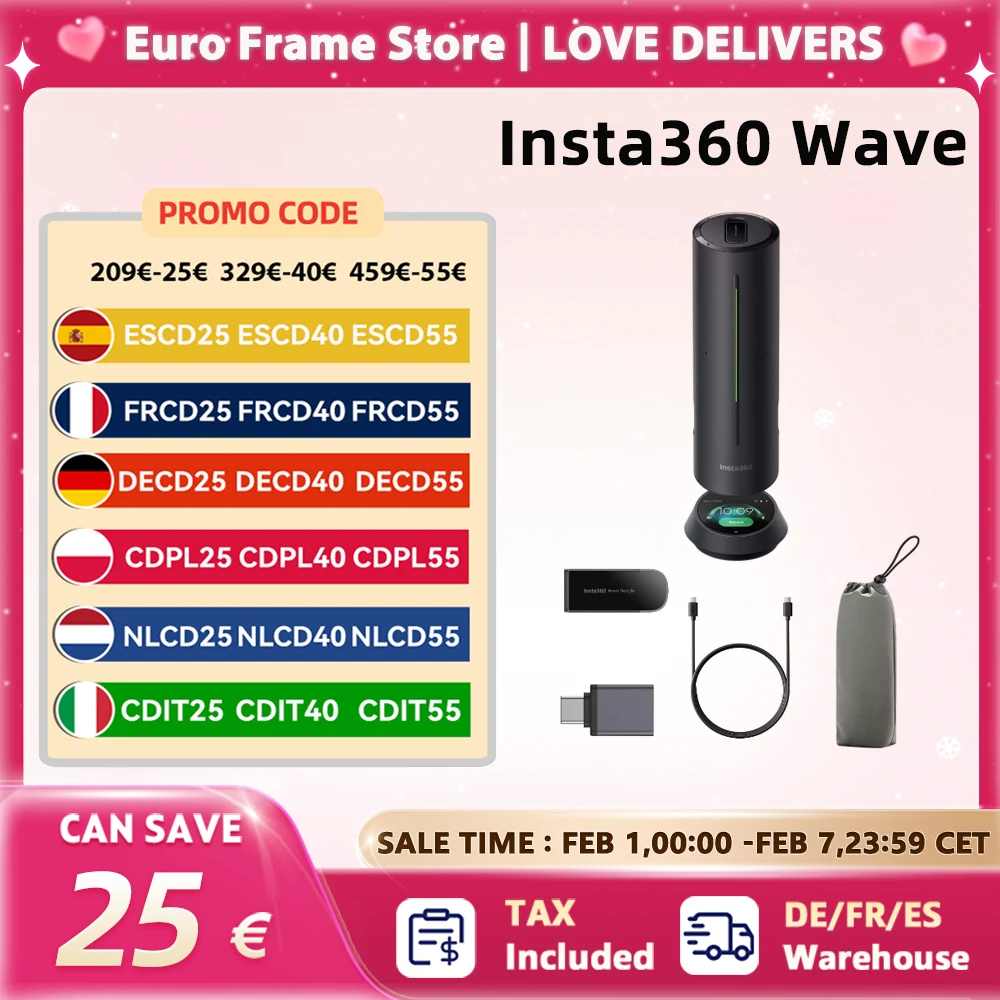 Insta360 Wave AI Omnidirektionales Mikrofon und Lautsprecher 360 ° 5-Meter-Tonabnehmerreichweite Intelligente Rauschunterdrückung Drahtloses Bluetooth Live