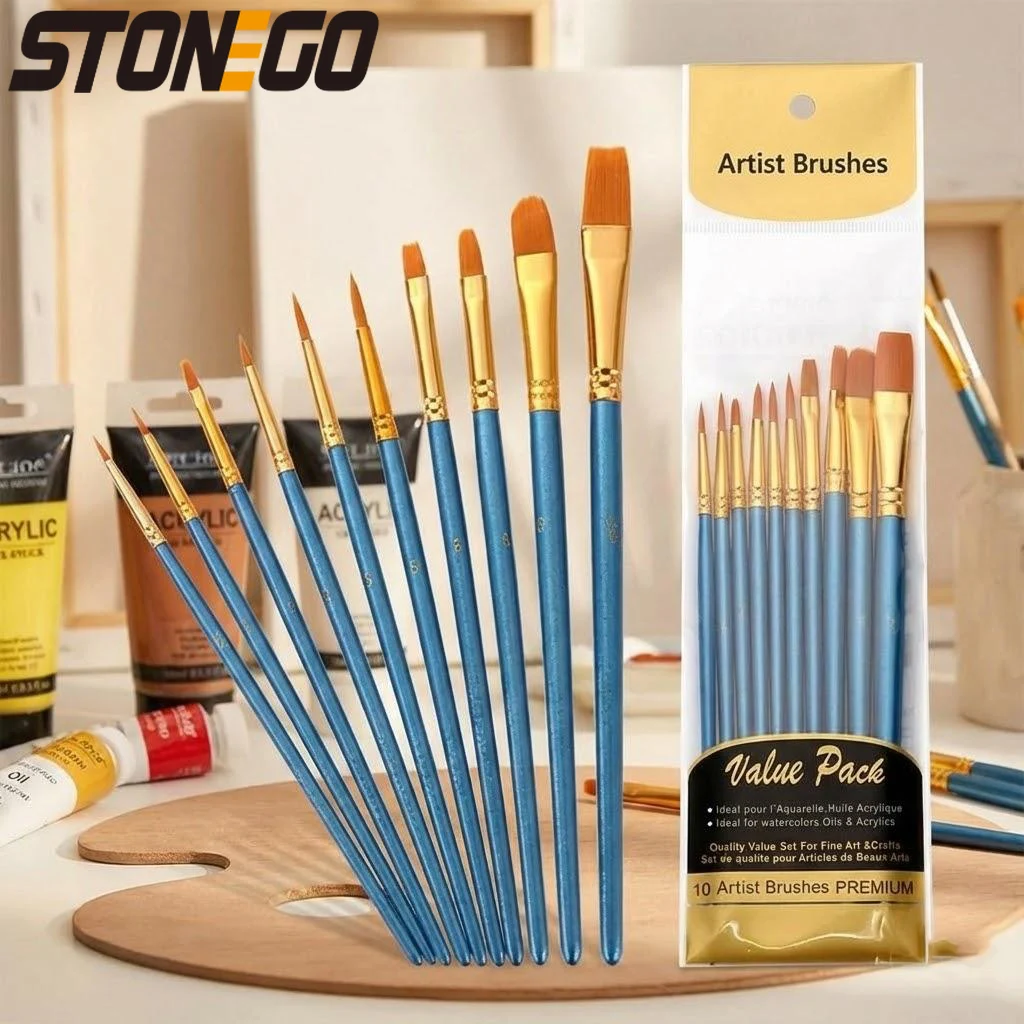 10-teiliges Set Nylon-Haarpinsel für Stoffkunst DIY Rundspitzen-Wasserfarben-Gouache-Werkzeug