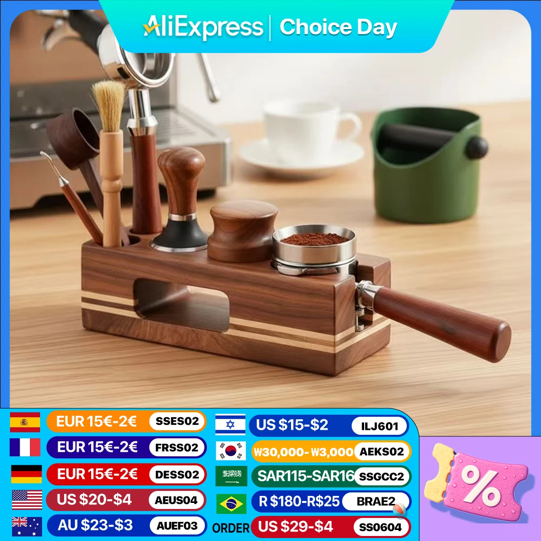Kaffee-Tamper-Matte, Station, Ständer, Siebträgerhalter, Stützgestell, Walnussholz, für 51 mm, 54 mm, 58 mm, Espresso-Zubehör, Barista