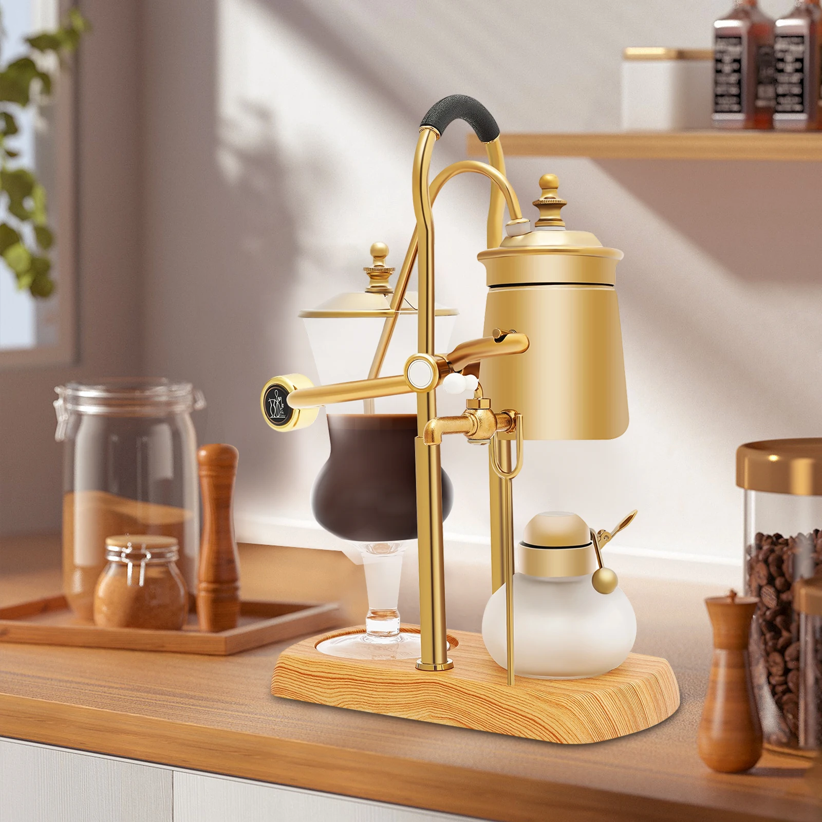400 ml Belgien Royal Family Balance Siphon Einzigartige Schwerkraft Vintage Kaffeemaschine Vakuumbrühsystem Luxus-Set Gold