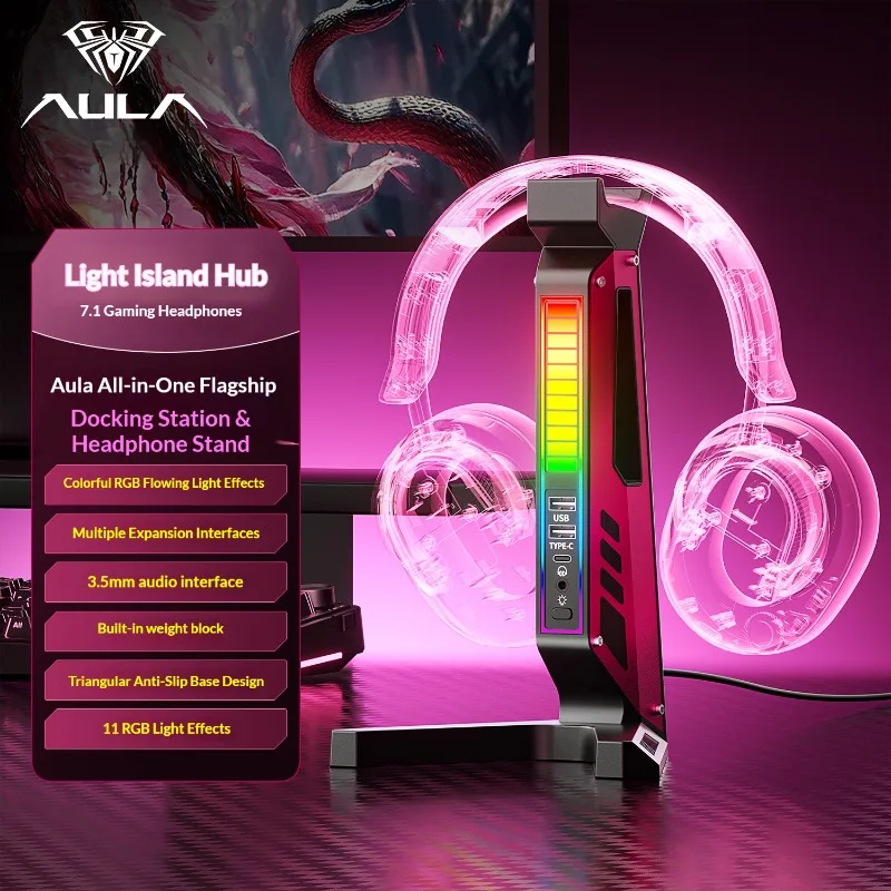 AULA Guangyu Hub Kopfhörerständer RGB 3,5 mm Audio-Schnittstelle Anti-Rutsch-Basis Erweiterungsdock Displayständer Headset-Zubehör Geschenk