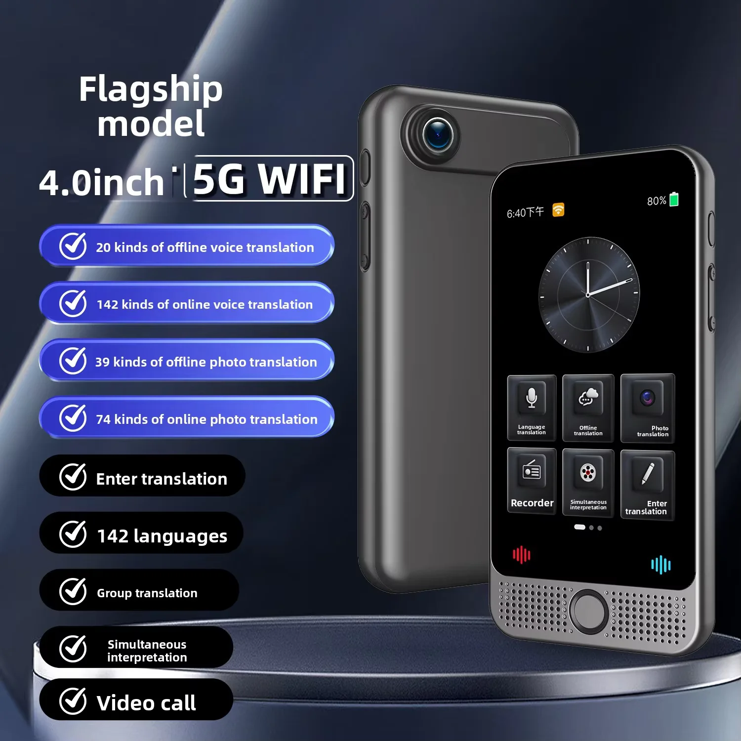 T17 Intelligenter Präzisions-Offline-Touchscreen mit Spracherkennung, Fotoaufnahme und 138 Sprachen Übersetzer für Reisen