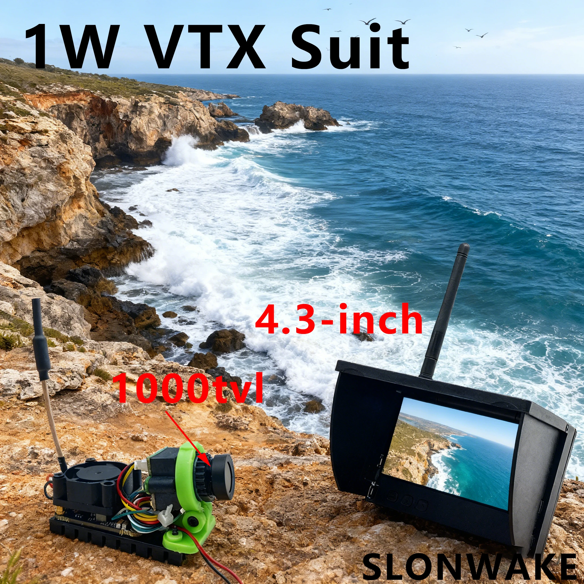SLONWAKE 5,8G 48CH 4,2W VTX Sender mit 1200TVL FPV-Kamera und VR009 FPV-Brille 3 Zoll 480*320px Video-Headset HD-Brille