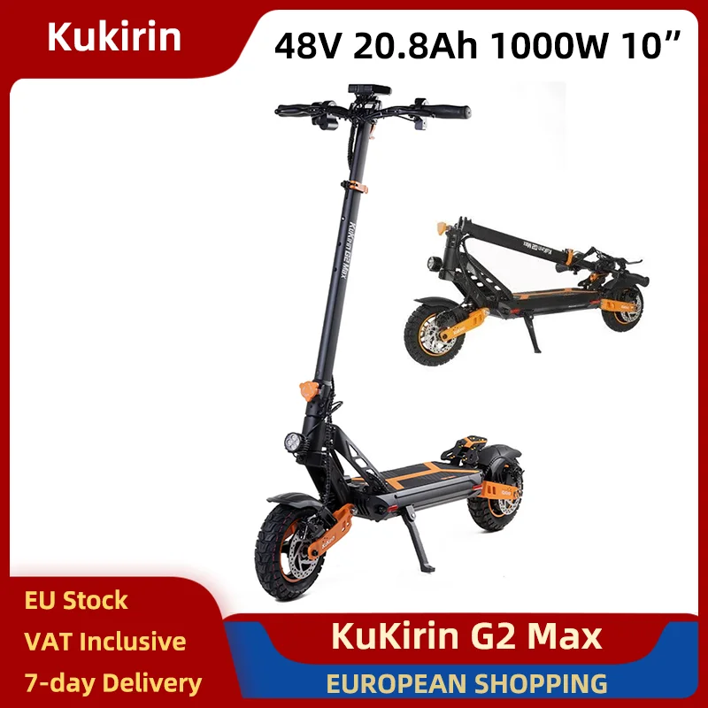 KuKirin G2 Max Elektroroller, faltbar, 1000 W, 48 V, 20,8 Ah, 10 Zoll Offroad-Luftreifen, zusammenklappbarer E-Scooter, 55 km/h, Doppelscheibenbremsen