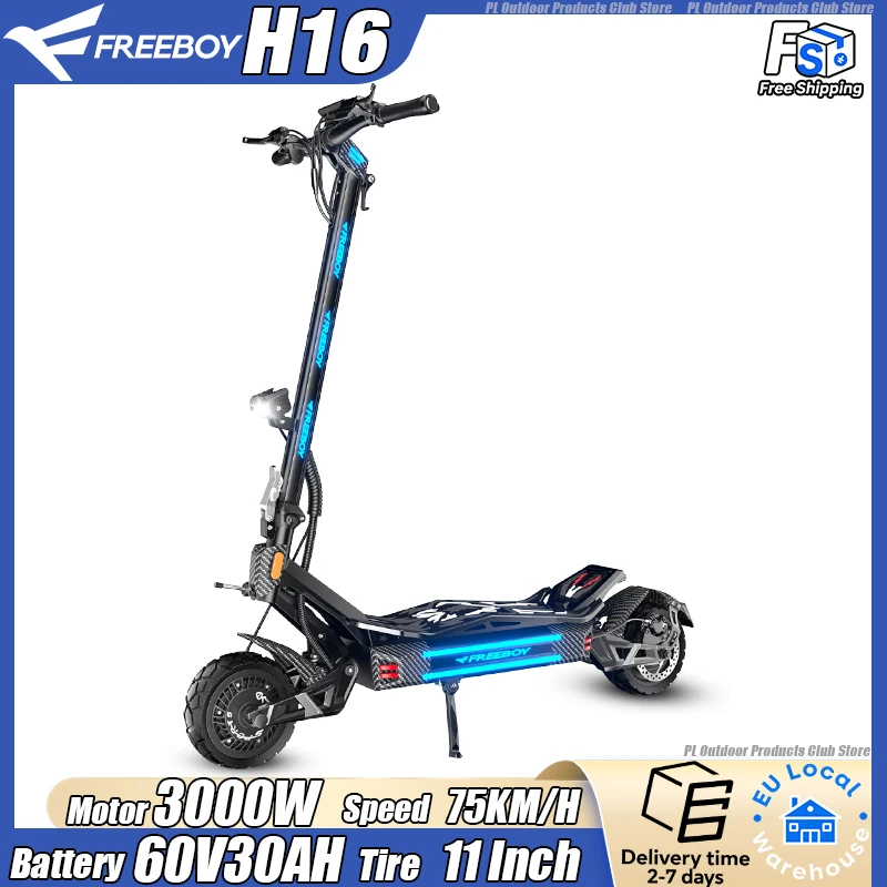 Freeboy H16 Elektroroller 3000W Motor 60V30AH Batterie Offroad-E-Scooter Doppelte hydraulische Scheibenbremsen 11-Zoll-Reifen E-Scooter