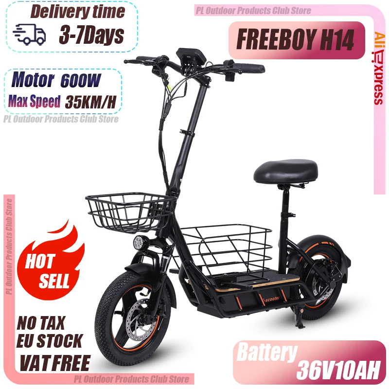H14 E-Scooter 600W Motor 36V10AH Akku 14-Zoll-Reifen E-Roller mit Ablage für Stadtpendeln und Freizeitfahrten Elektroroller