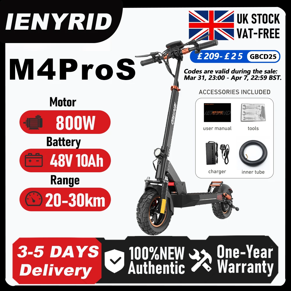 IENYRID M4 Pro S Faltbarer Elektroroller 800W 48V/10AH E-Scooter 25KM Pro Stunde Maximale Reichweite 20-30KM Erwachsenen E-Mountain-Scooter