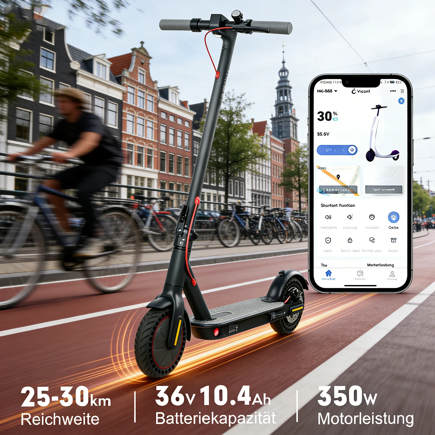 Umweltfreundliche Fahrt mit APP: 350W E-Scooter, Komfortsitz & C-förmige Stoßdämpfer, 20 km/h, 25-30 km Reichweite für modernes Pendeln