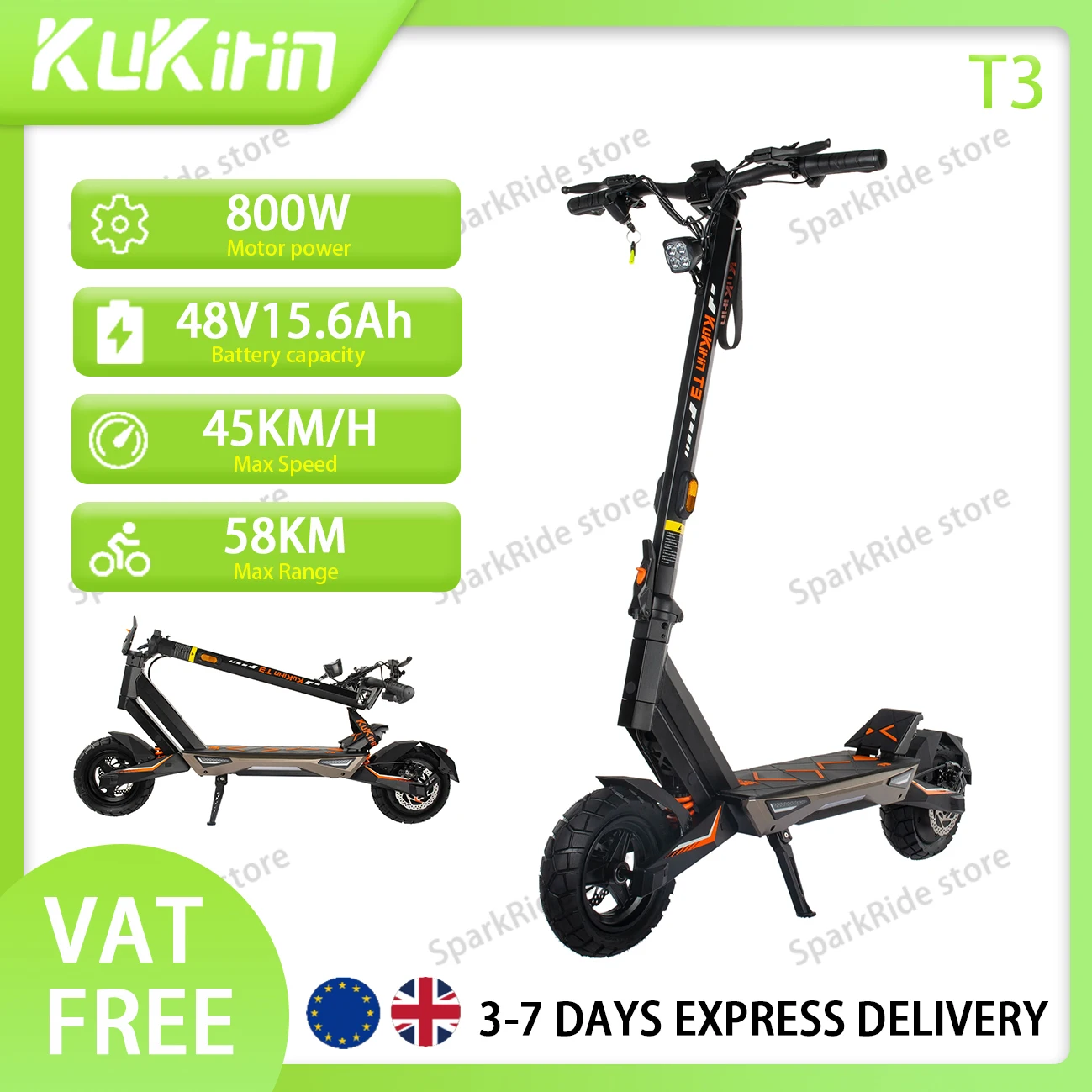 Kukirin T3 All-Terrain faltbare Elektroroller 800 W Motor 48 V 15,6 Ah Batterie 10 Zoll Reifen 45 km/h Geschwindigkeit 58 km Reichweite