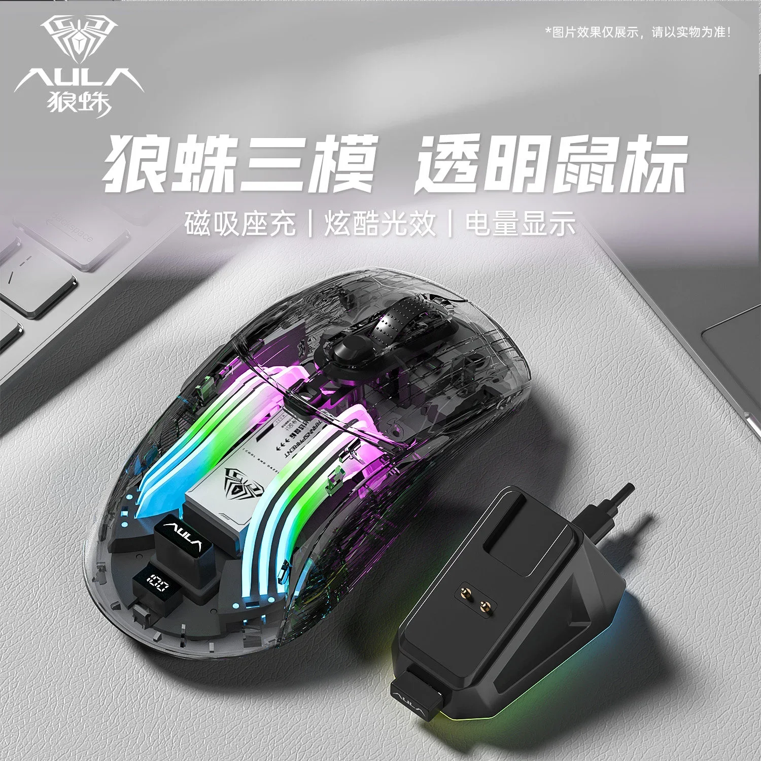 AULA SC630 PRO Gaming-Maus, kabelgebunden, 2,4 G, kabellos, PAW3212, 3-Modus-Maus, transparente RGB-Magnetladestation, individuelles Zubehör