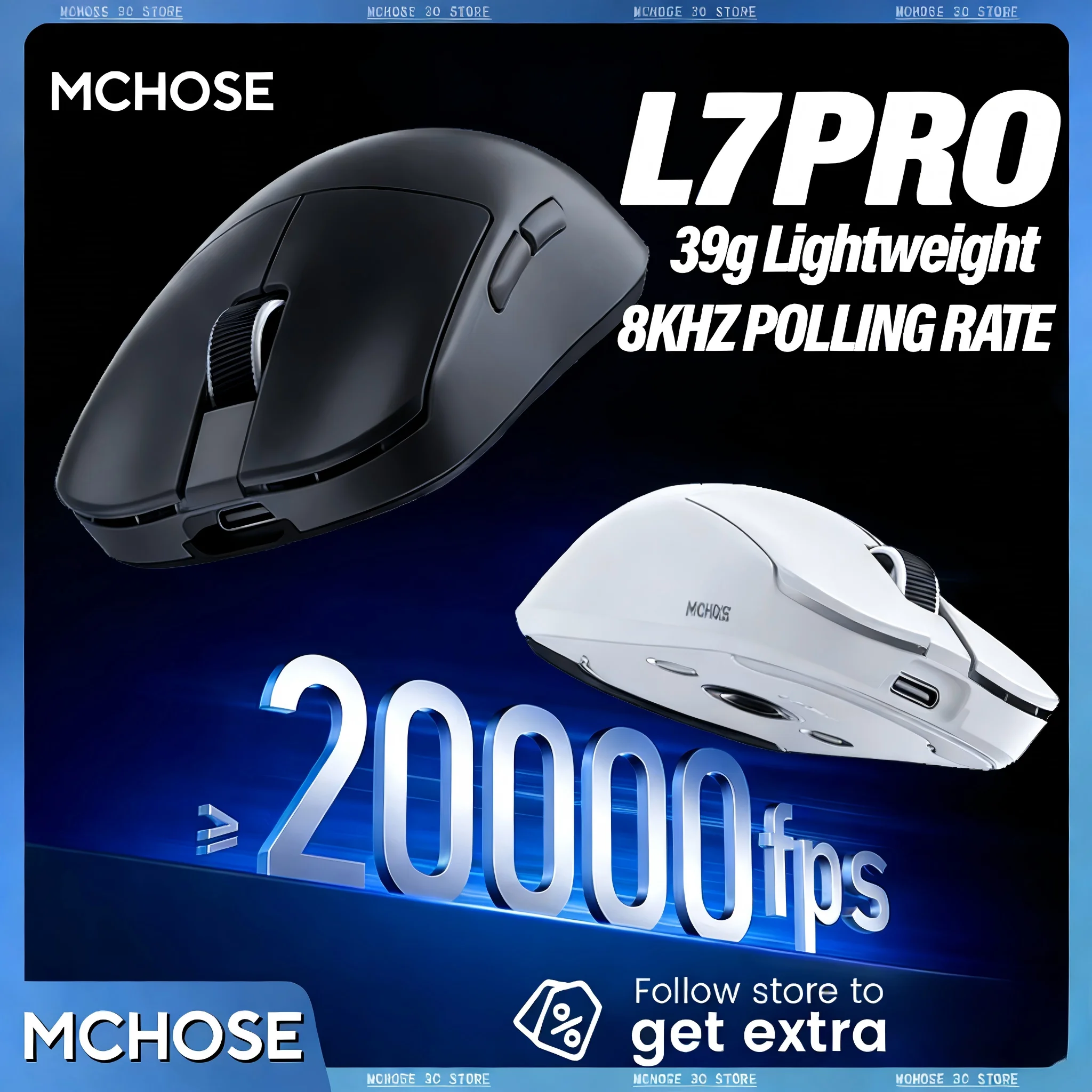 MCHOSE L7 Pro Gaming-Maus 39g Leichtgewicht Superleicht 8kHz Ultra-Niedrige Latenz Kabellos Unterstützt Bluetooth 250mAh Optischer Schalter