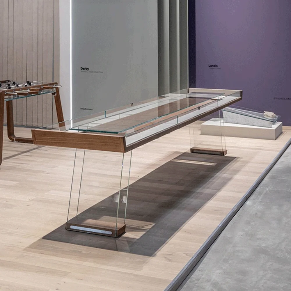 Hochwertiger 12-Fuß-Schaffleboard-Tisch aus Glas, luxuriöser, klarer Massivholz-Schaffleboard-Tisch für Bar-Clubs