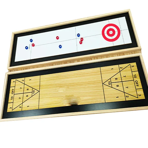 Heiß begehrtes, beliebtes 2-in-1-Tischspiel aus Holz: Shuffleboard und Curling für Erwachsene – Indoor-Spiel zur Verkaufsförderung