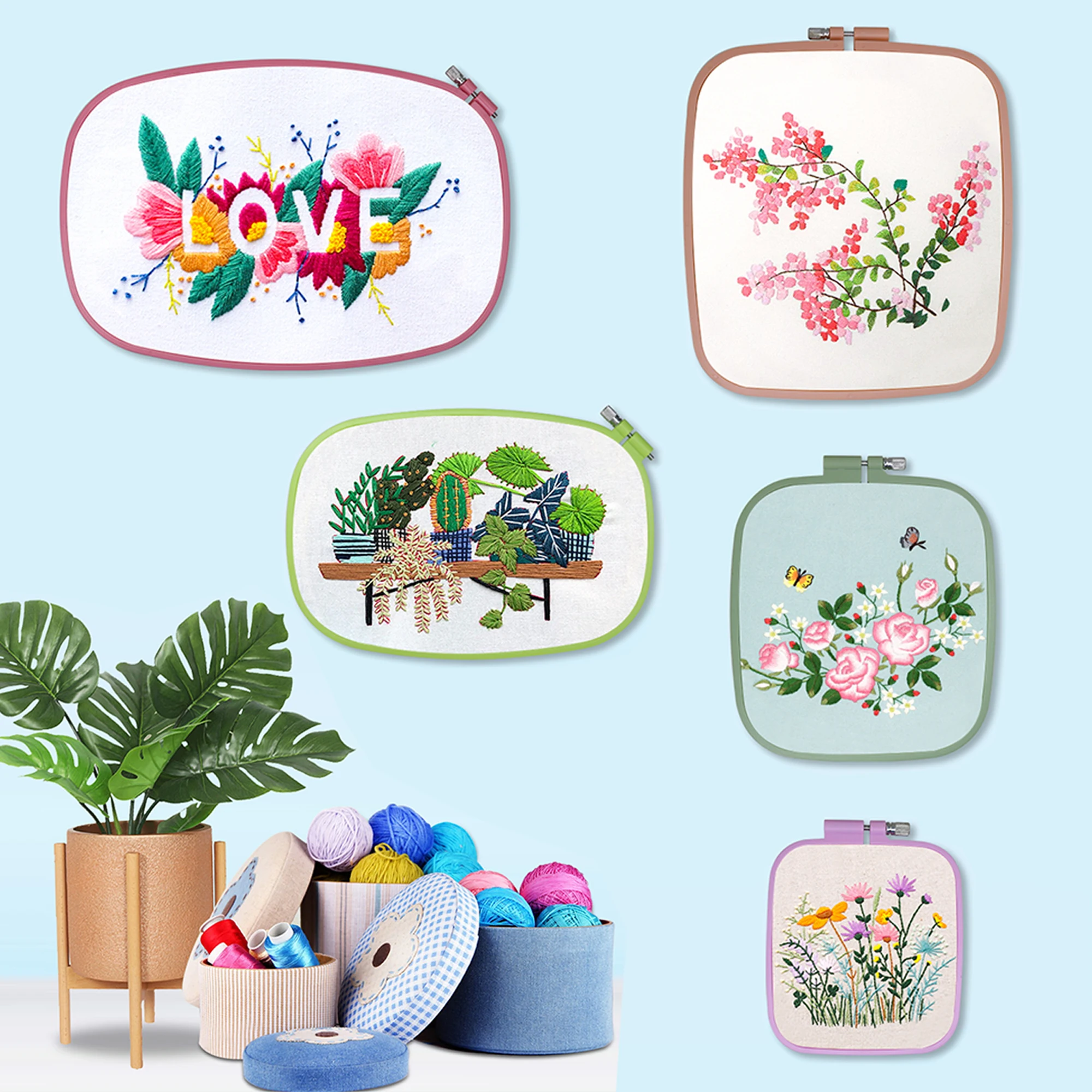 Verstellbares Stickrahmen-Set im Holzrahmen für Präzisionsstickerei DIY Nähen Handwerk Nadelarbeit Zubehör Werkzeug