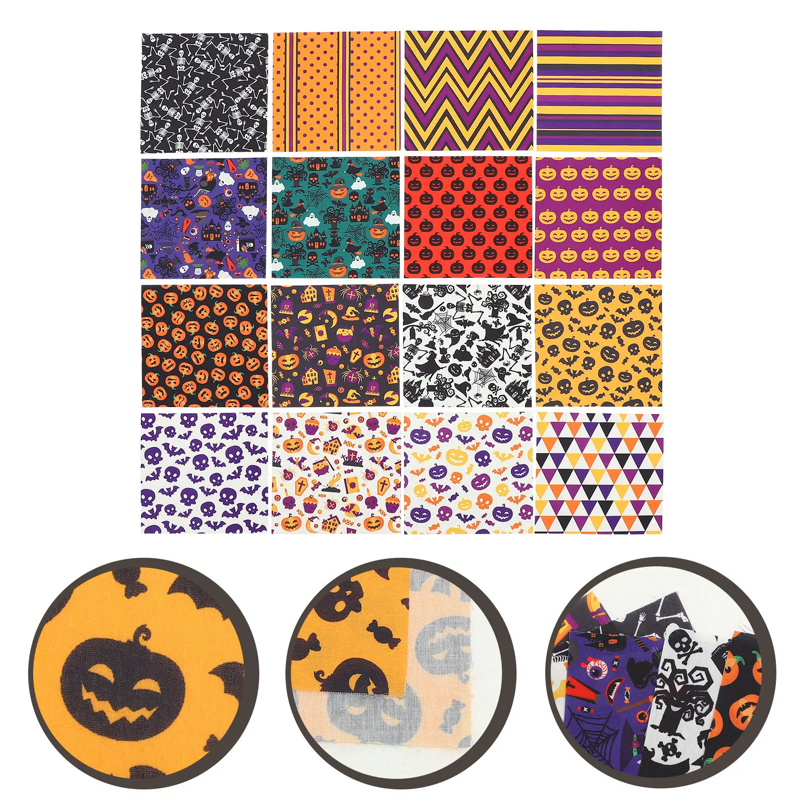 16-teiliges Halloween-Themen-Stoffset, Großformatige Polyester-Nähstoffe, DIY-Material für Quiltprojekte und Wanddekorationen