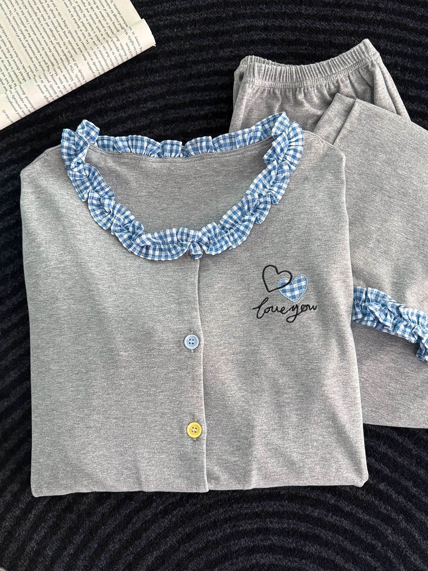 Reine Baumwolle Langarm-Heimkleidungsset für Damen Frühling Herbst Winter Bequemer Atmungsaktiver Weicher Stoff