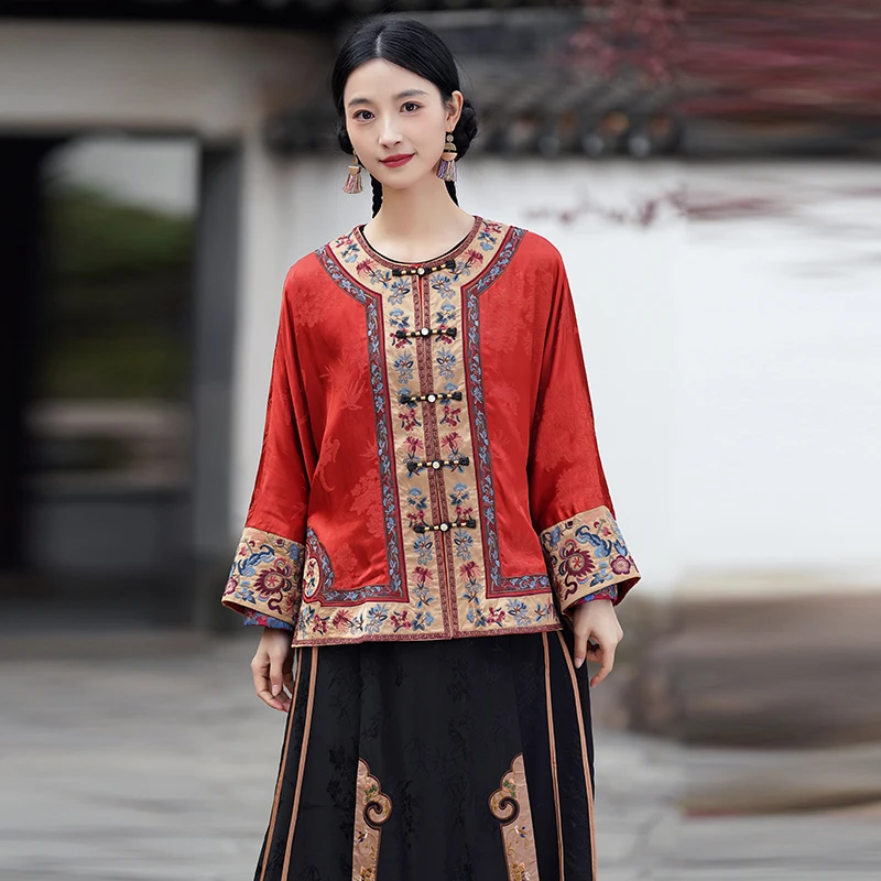 Neue 2026 Chinesische Elegante Schwer Bestickte Damenjacke Langarm Rundhals Oberbekleidung Gesteppter Stoff Lycra Rayon Baumwollmischung