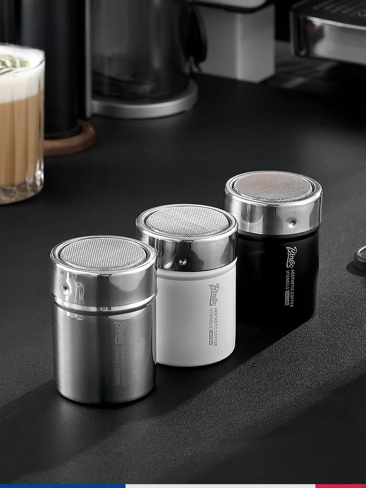 Bincoo Streuerzeug mit Deckel für Kaffee, Kakao, Zucker, Pulver-Sieb, Zylinder, Latte Art Druckwerkzeug, Kaffeezubehör