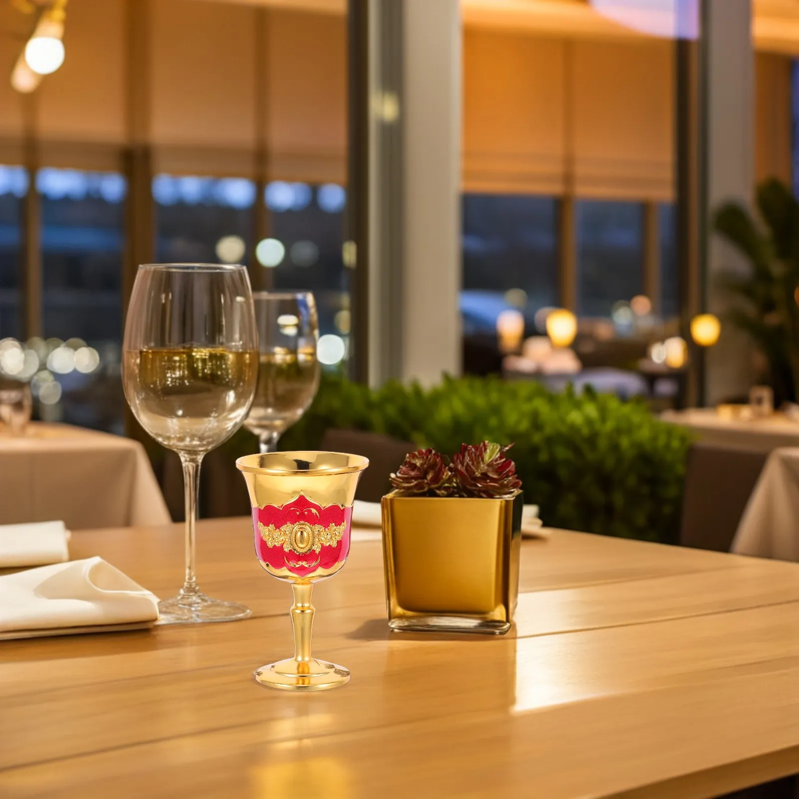 Retro Chinesischer Stil Glasbecher Polierte Abgerundete Kanten Robuste Basis Heim Hochzeit Zusammenkunft Haushalt Wein Trinkbecher Dekorativ
