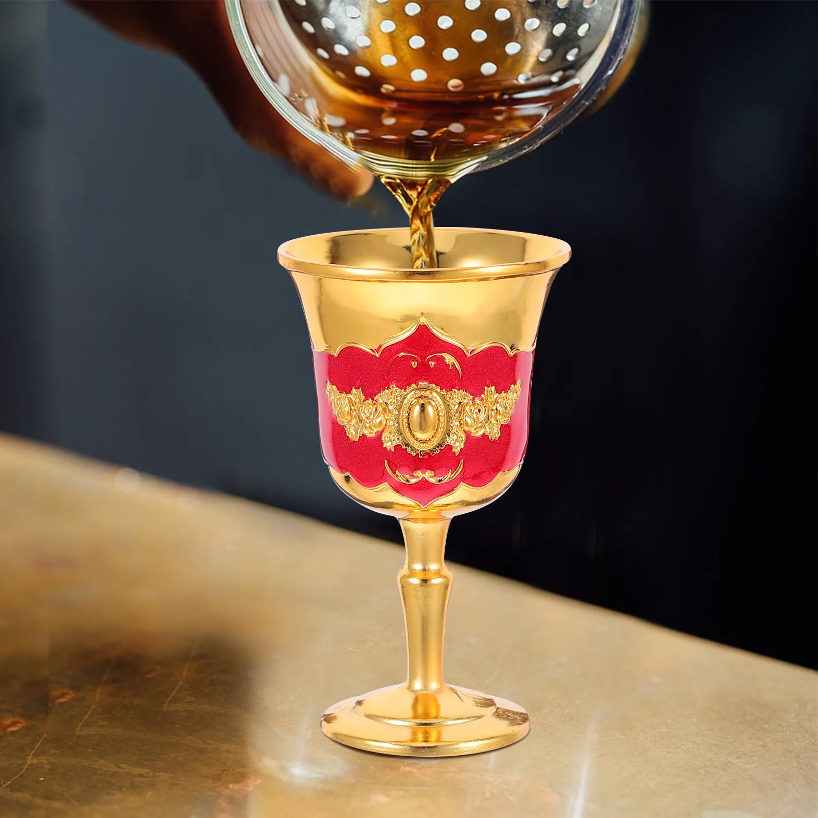 Zinklegierung Kelchförmiger Chinesischer Likörbecher Vintage Geprägter Kelch für Weinproben Elegantes Retro Metall-Trinkglas