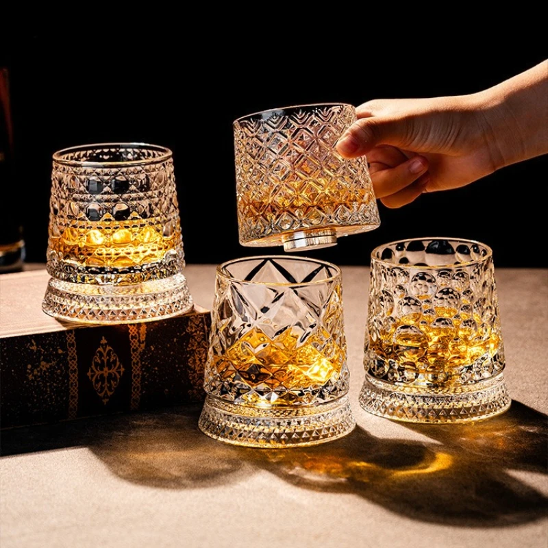Tumbler Whisky Glas Kristall Whisky Gläser Rotierenden Spinning Wein Brandy Glas Tasse Drink für Bar Home Party