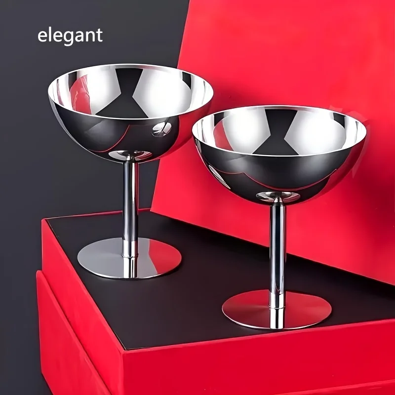 2 robuste Dessertbecher und Schüsseln aus Edelstahl – geeignet für Eis, Mousse, Obstsalate, Kuchen, Kuchen