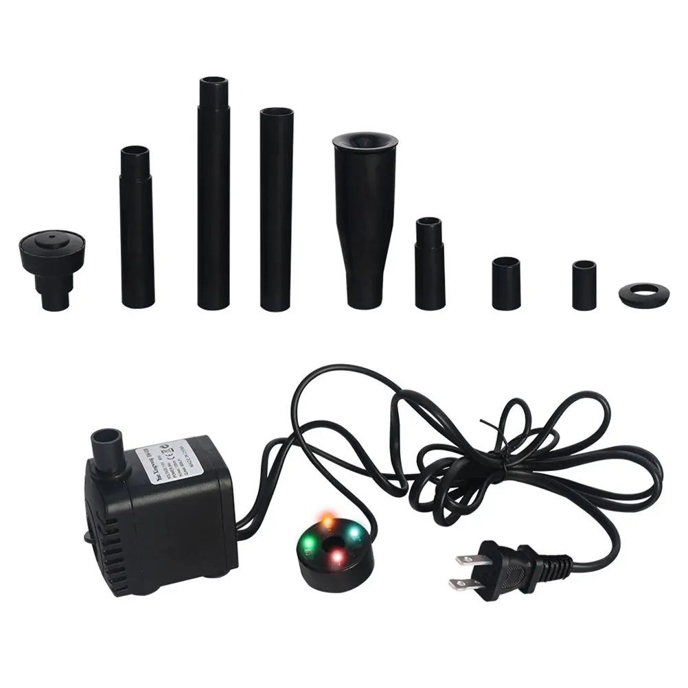 1 Set Tauchpumpe mit 8W LED und US-Stecker, inklusive 2 Düsen und Verlängerungsstangen für Garten, Teich, Aquarium und Vogelbad