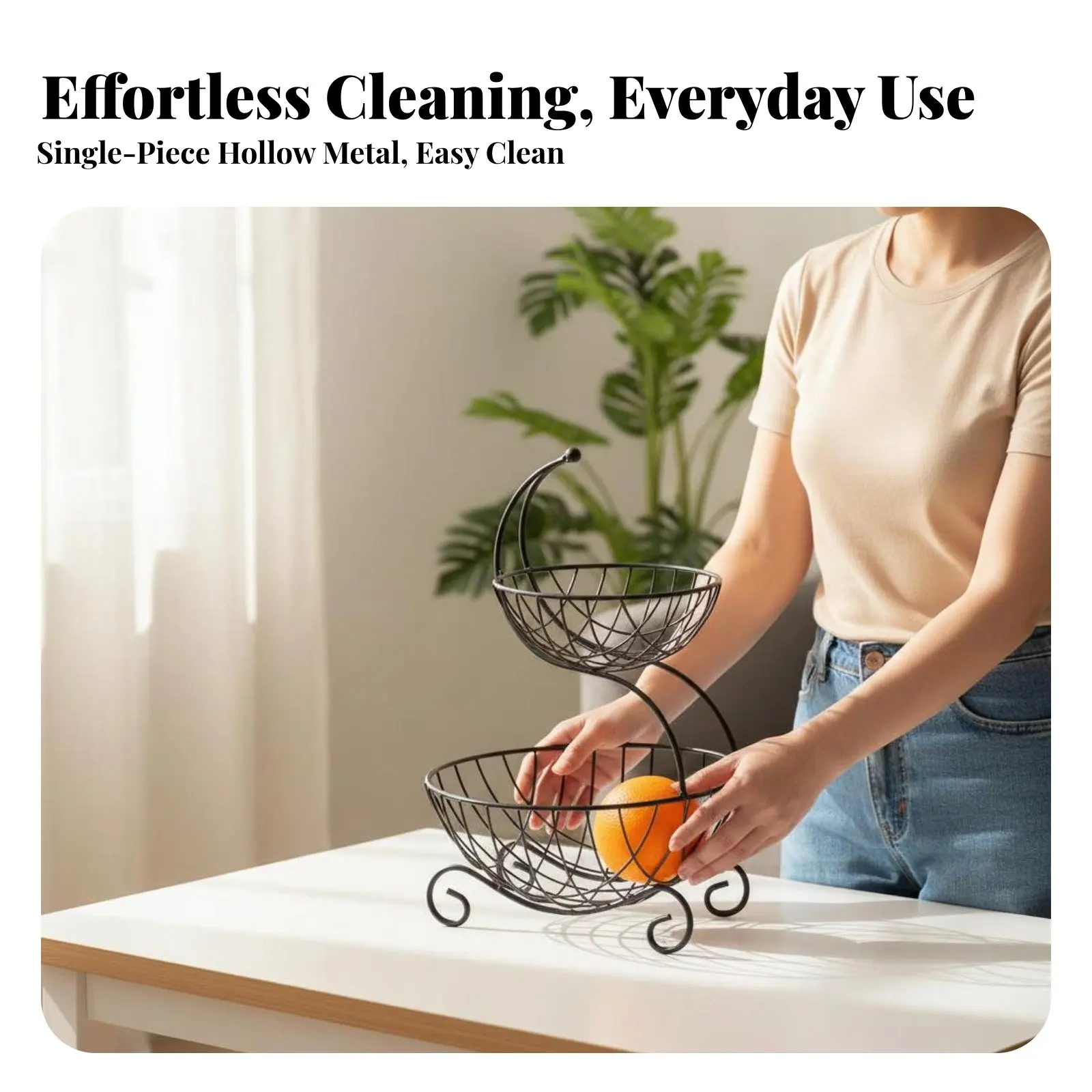 2-stöckiger Obstkorb aus Schmiedeeisen, 2-stöckiger Obstkorb für die Arbeitsplatte, Snack-Platte, platzsparendes Gemüseregal für die Arbeitsplatte im Büro