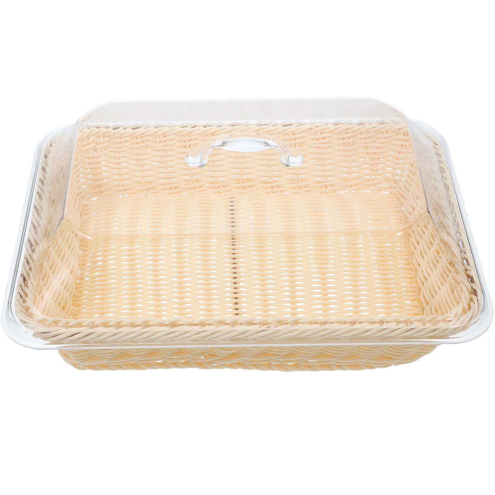 Gewebter Plastik-Brotkorb mit Deckel für Küchentheken-Aufbewahrung Frischhalteschutz Obst-Snack-Servierkorb Dekorativer Haushaltsartikel
