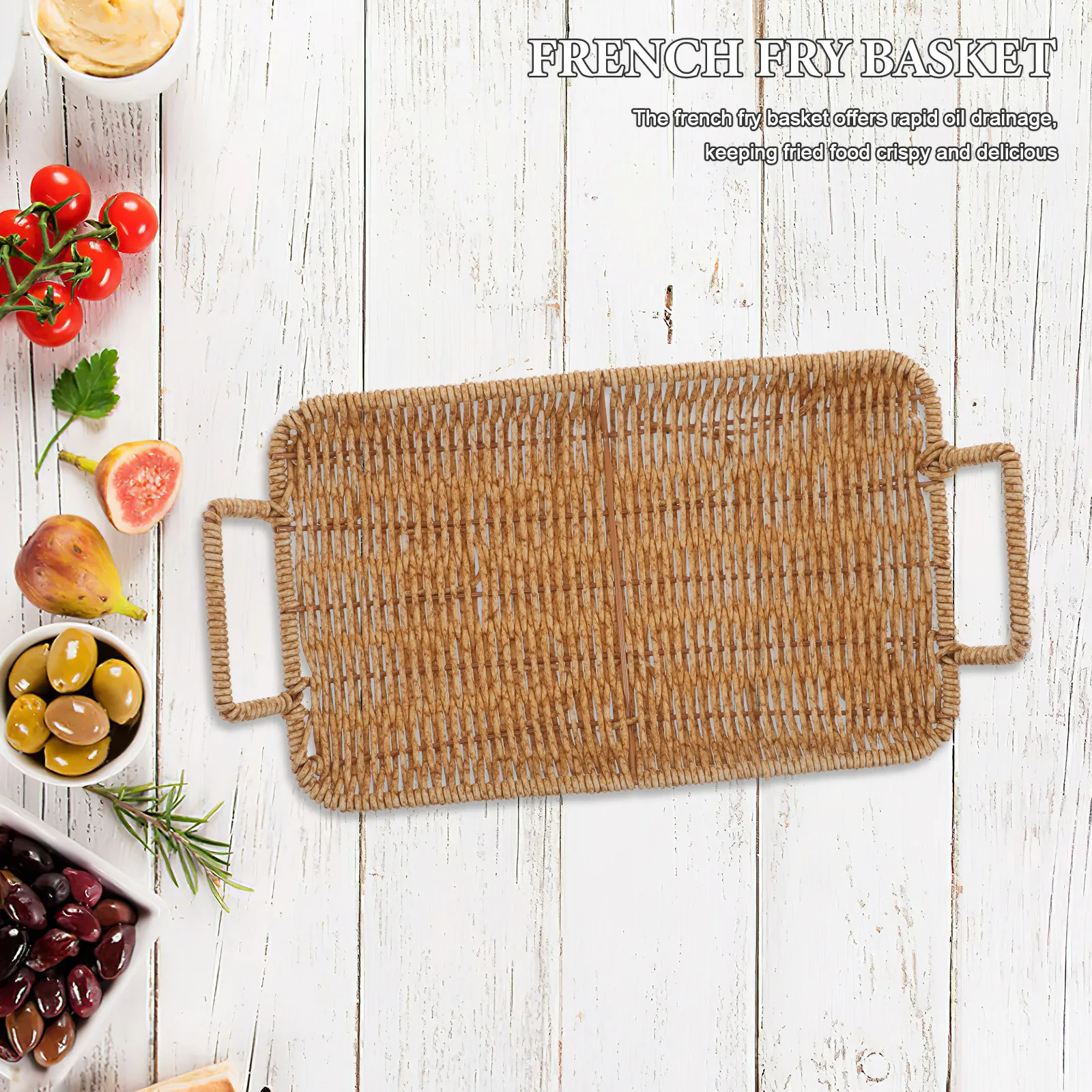 Rechteckiger Rattan-Frittierkorb aus Kunststoff, Kleine Dekorative Servierplatte, Snack-Organizer mit Schneller Ölabtropfung für Knusprige Pommes