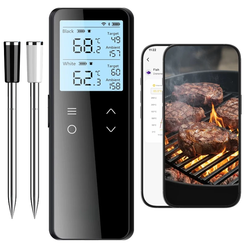 Y42A-TP510 Digitales Thermometer, wasserdicht, mit Topfclip, 8,1 Zoll langer Sonde zum Kochen von Lebensmitteln, Fleisch, sofort ablesbare Messwerte für Süßigkeiten