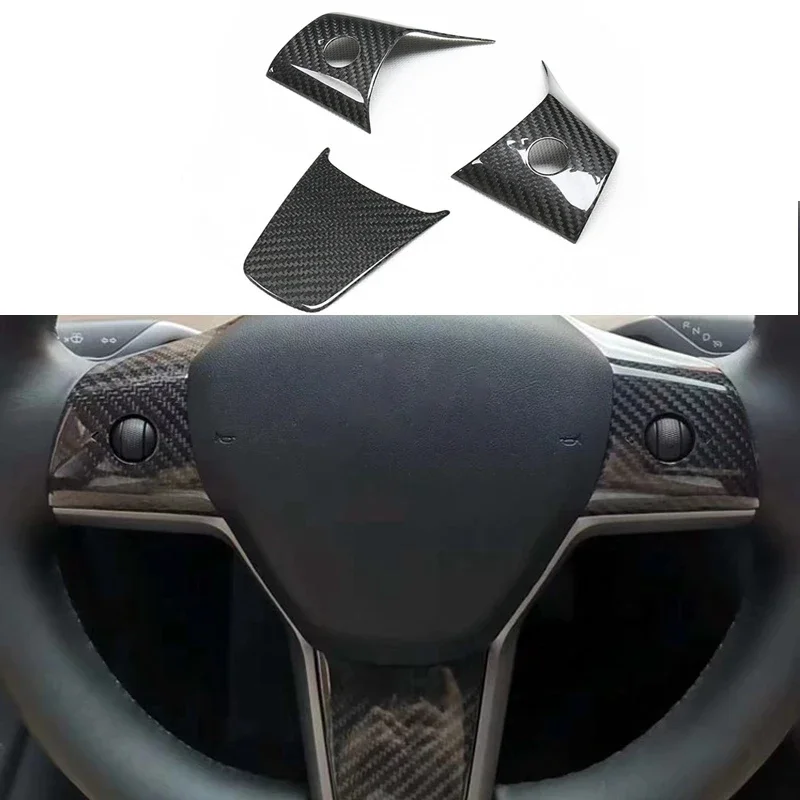 Trockenes Kohlefaser-Lenkrad, dekorativer Patch, Autozubehör für Tesla Model 3, Modell Y
