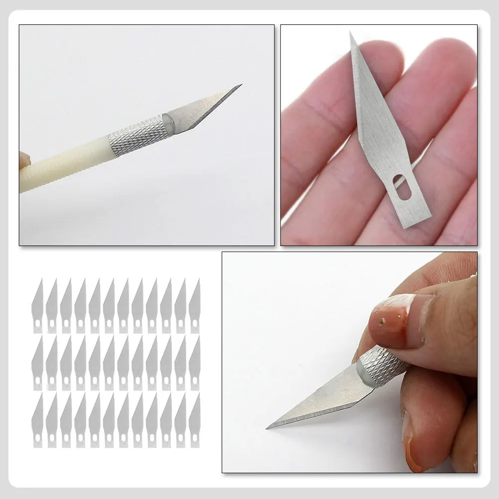 50 Stück Schneidklingen Ersatz scharfe Stiftmesserklingen zum Präzisionsschneiden von Holz, Kunststoff, Papier, Scrapbooking