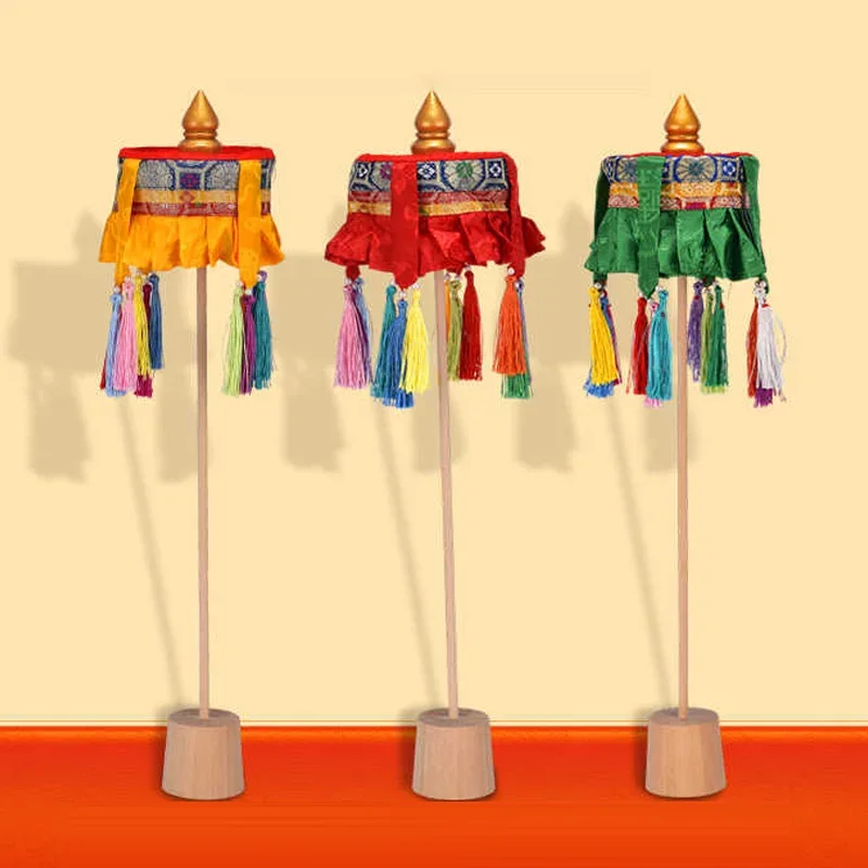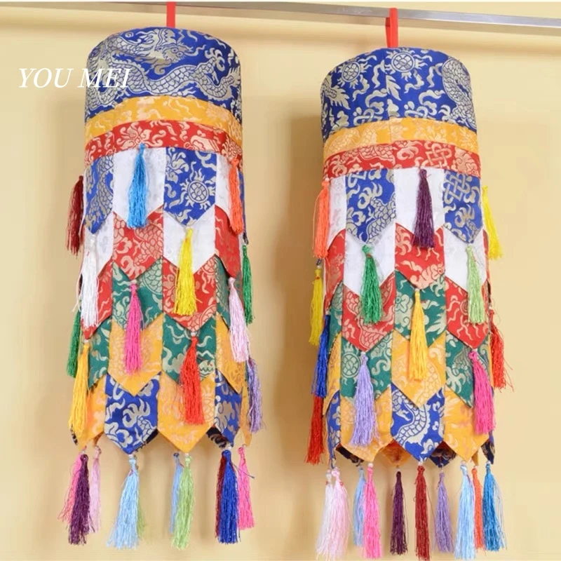 1 Stück tibetische Flaggen im tibetischen Stil, besticktes Hängebanner mit dem Muster „Fünf Wunder und zwei Wünsche“, Gebetsflagge für Tempel und Kapellenaltar