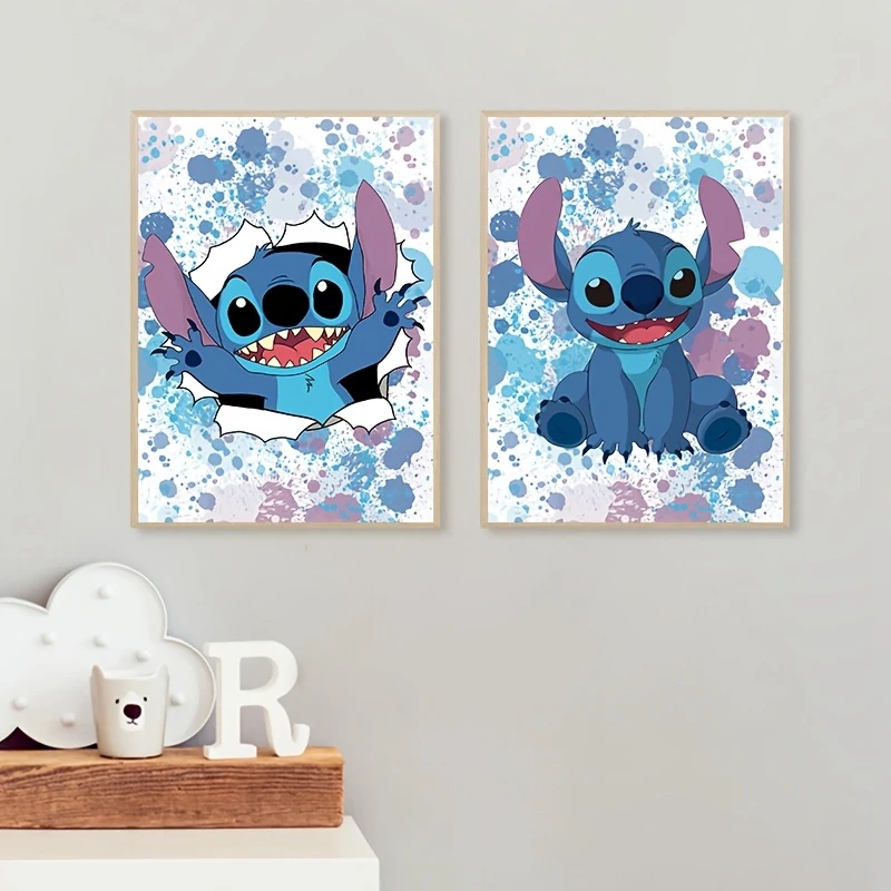 Aquarell Lilo und Stitch Kunstdruck, Stitch Ohana Poster Leinwand Wandkunst Jungenzimmer Mädchenzimmer Wanddekoration