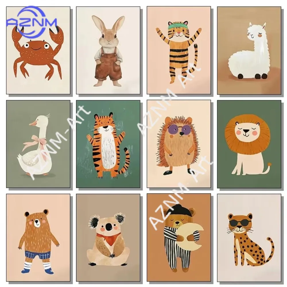1 Stück niedliche Cartoon-Tiere, Frosch, Tiger, Kaninchen, Illustrationen, Poster, Leinwandgemälde und Wandkunst, Bild, Kindergarten, Heimdekoration