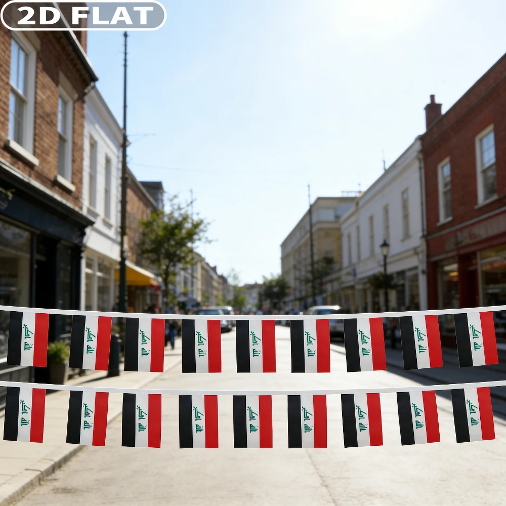 2D FLACH 18-teiliges Irak Wimpelkette Banner 14x21cm - Traditionelle Rot, Schwarz, Weiß Irakische Nationalflaggenfarben mit Emblem-Muster