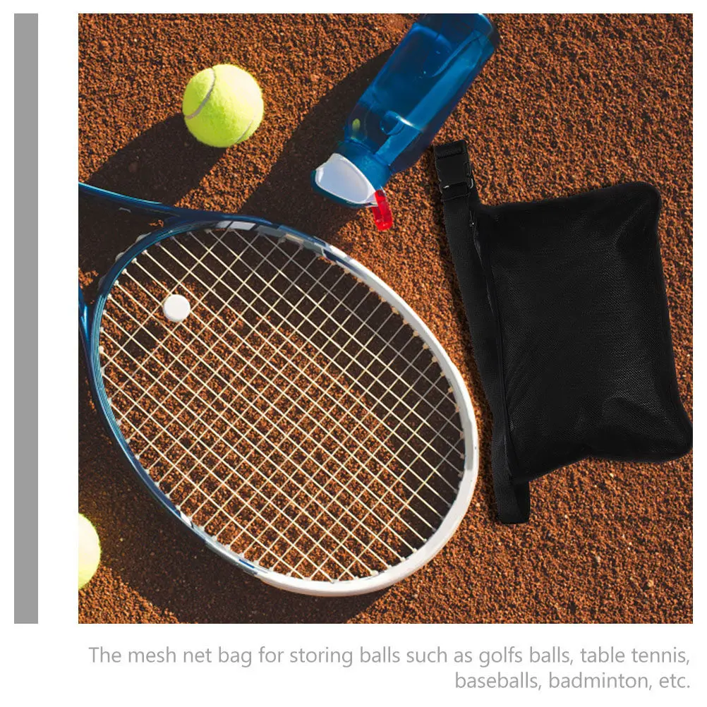 Wiederverwendbare Tennis-Aufbewahrungstasche mit elastischem Hüftgurt und Reißverschlusshalter für Golf-, Baseball- und Tennisbälle sowie Sportausrüstung.