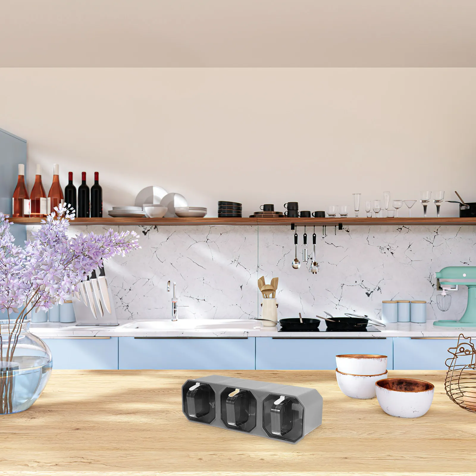 1 Set Elegantes 3-Fächer-Gewürzglas-Set, Wandmontierbar oder für Tischgebrauch, 400 ml pro Fach, Wiederverwendbarer Gewürzaufbewahrungsbehälter für Zuhause