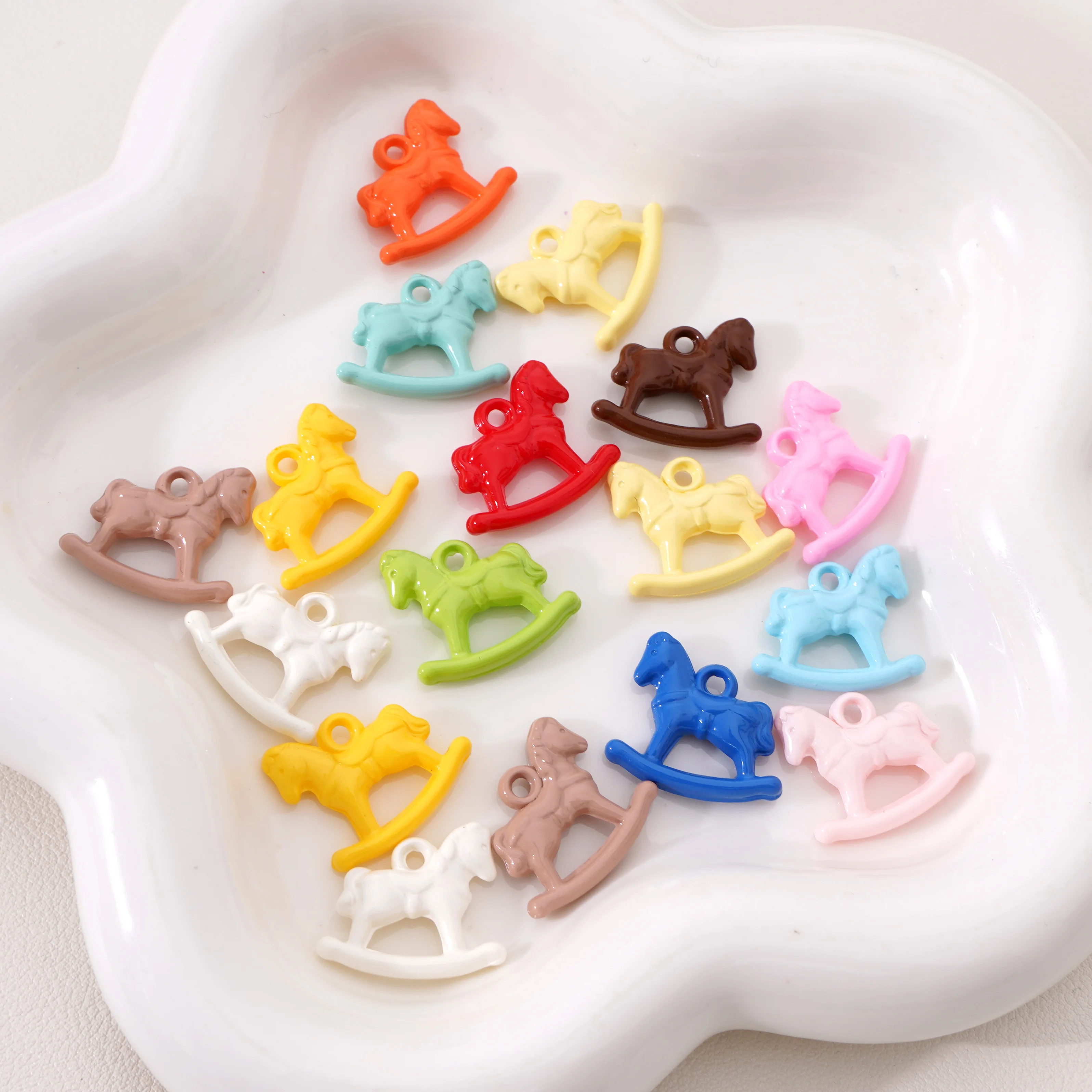 48 Stück undurchsichtige Acryl-Anhänger, 12 Farben, kleines Pferd, Tier, Kunstharz-Charms, Horsemanship-Anhänger, bunte Bastelperlen, Herstellungsset