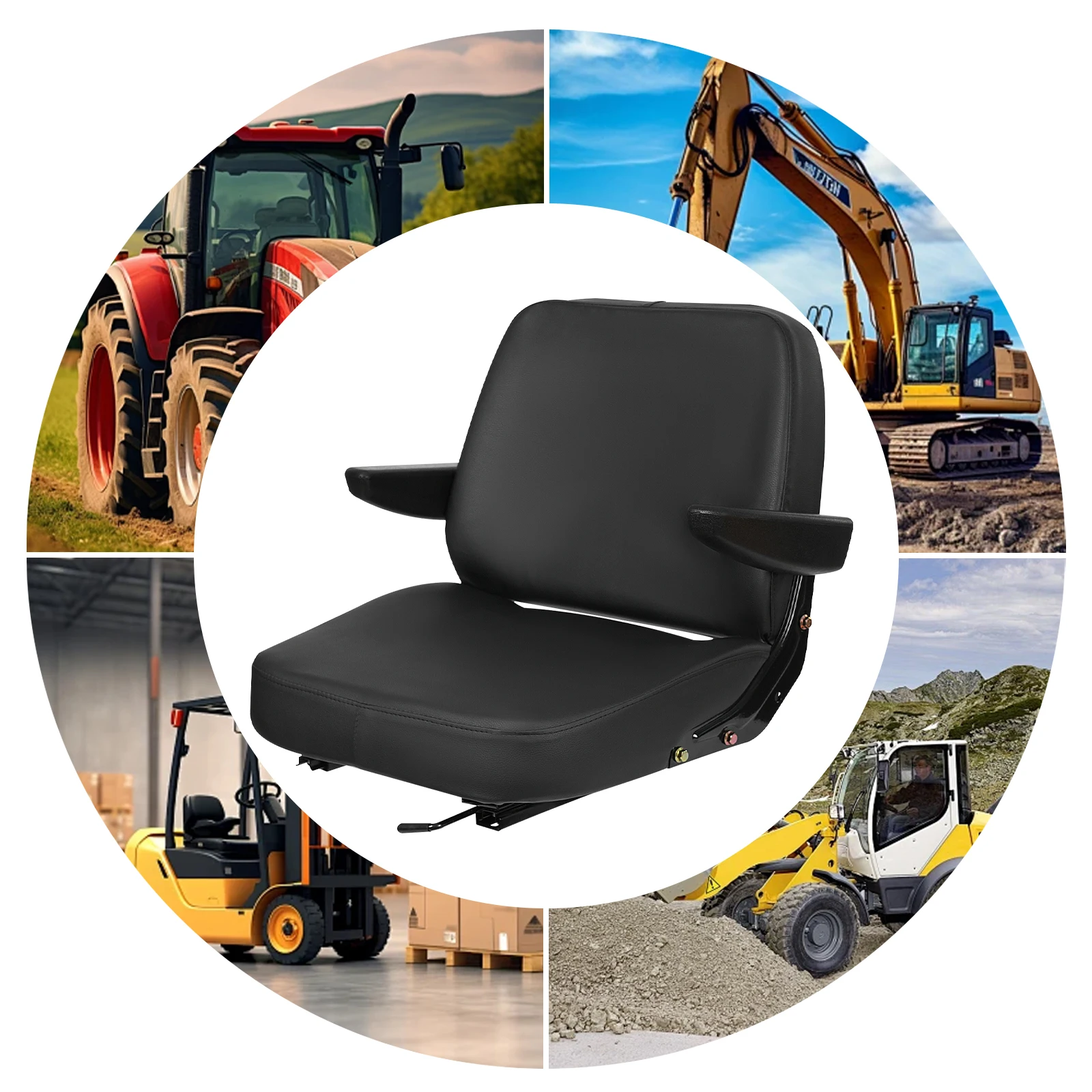 Luxuriöser Komfort-Traktorsitz mit ergonomischer, verstellbarer Armlehne, extrem unterstützt 220 Pfund Kapazität, verschleißfest und atmungsaktiv, Schwarz