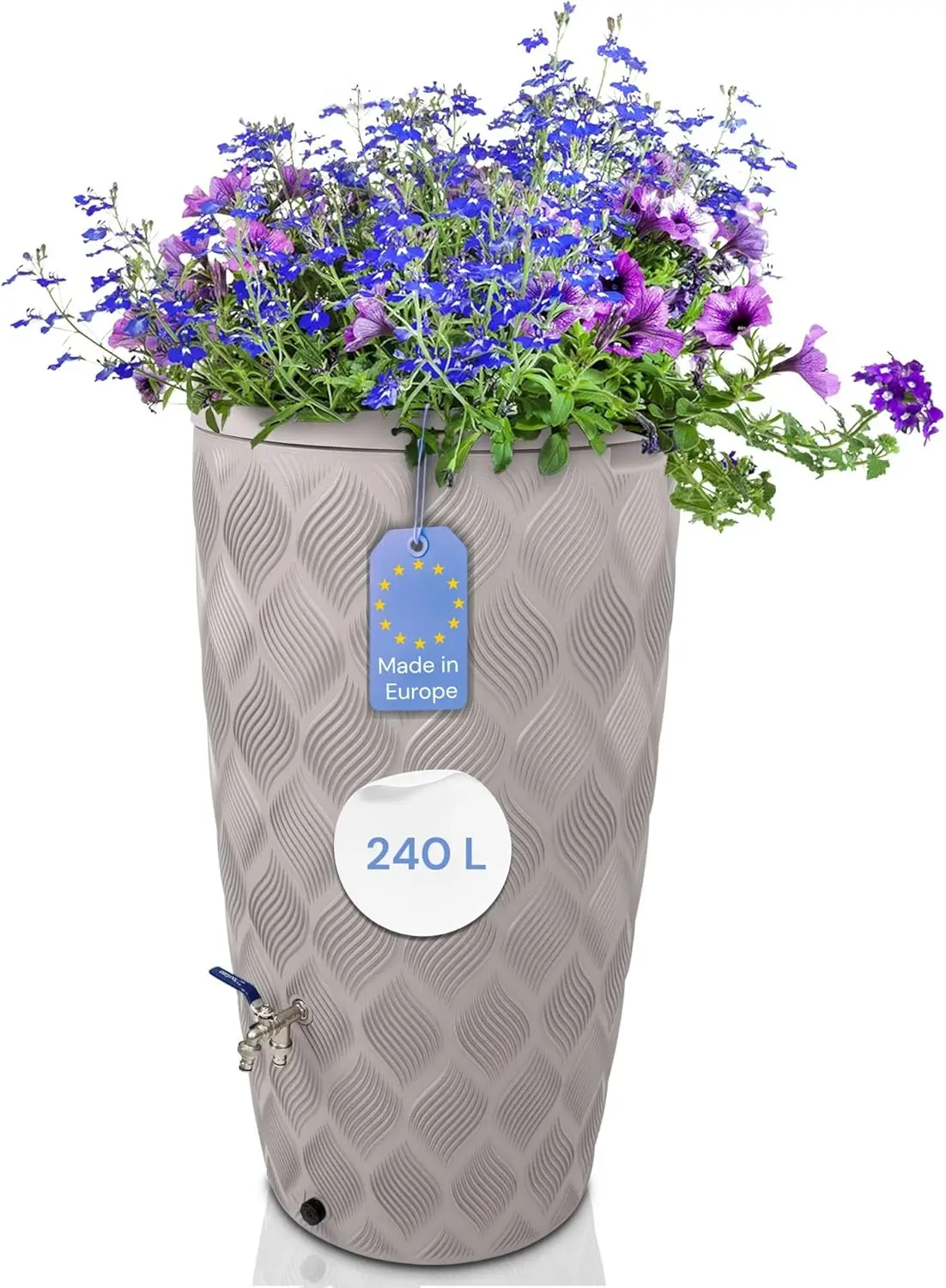 Regentonne 240 Liter [Seabreeze] Regenfass Frostsicher aus Kunststoff mit Wasserhahn - Regenwassertonne - Wasserfass