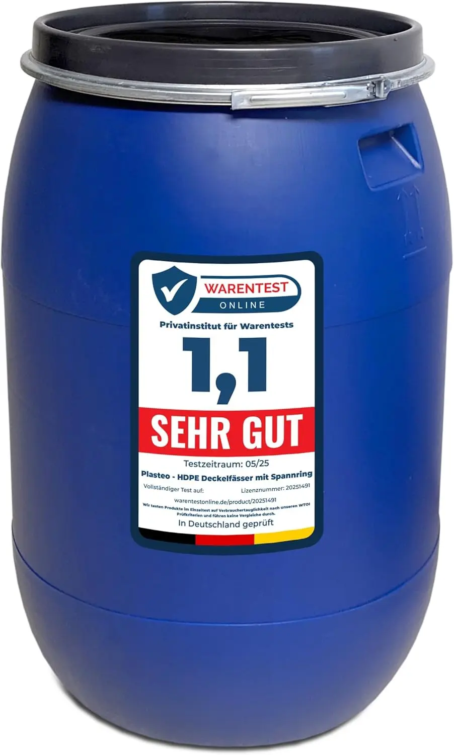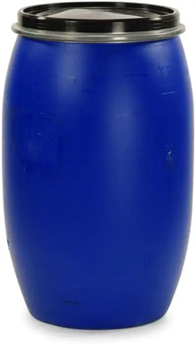 220 Liter Weithalsfass mit Deckel und Spannring, Lebensmittelecht BPA-Frei, Futtertonne Kunststofffass Deckelfass Regentonne