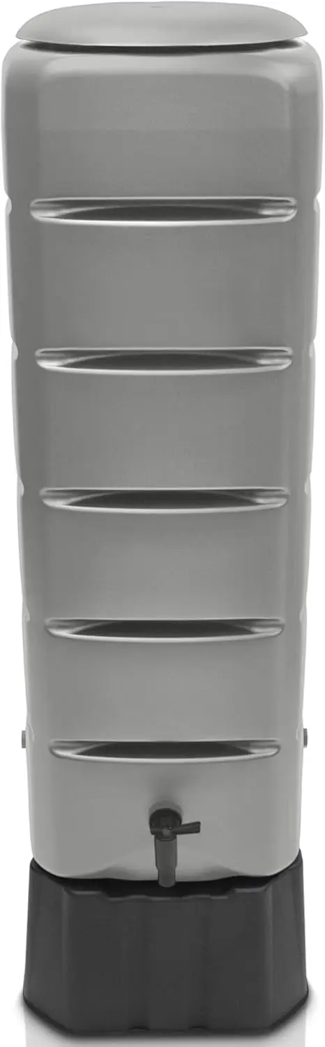 Regentonne [Tower] 120L mit Standfuß, Deckel & Wasserhahn - Frostbeständiges Regenfass aus Kunststoff - Regenwassertonne