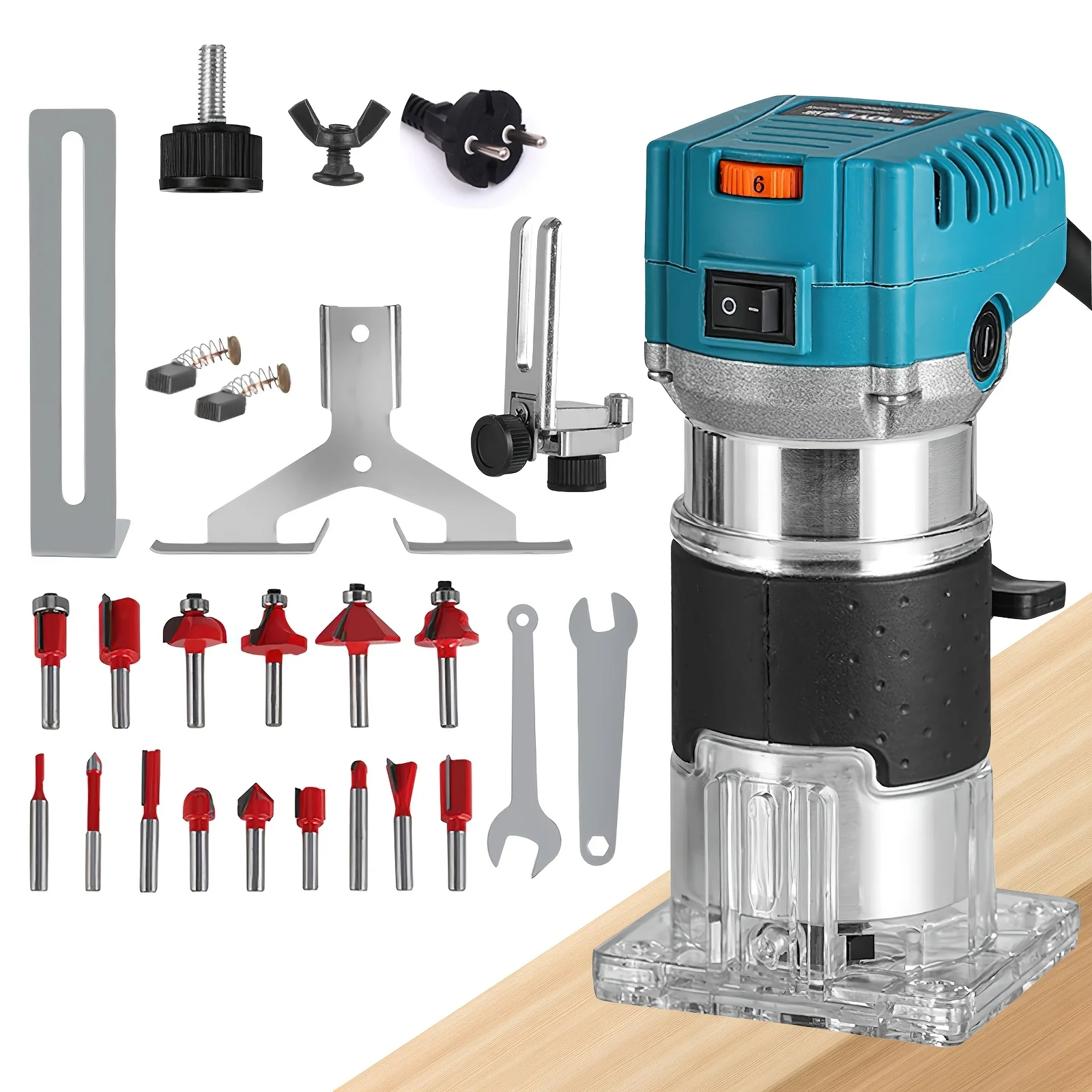 800 W Holzfräse, elektrischer Trimmer, 30.000 U/min, Schnitzfräser, Werkzeug, 6 Geschwindigkeiten einstellbar