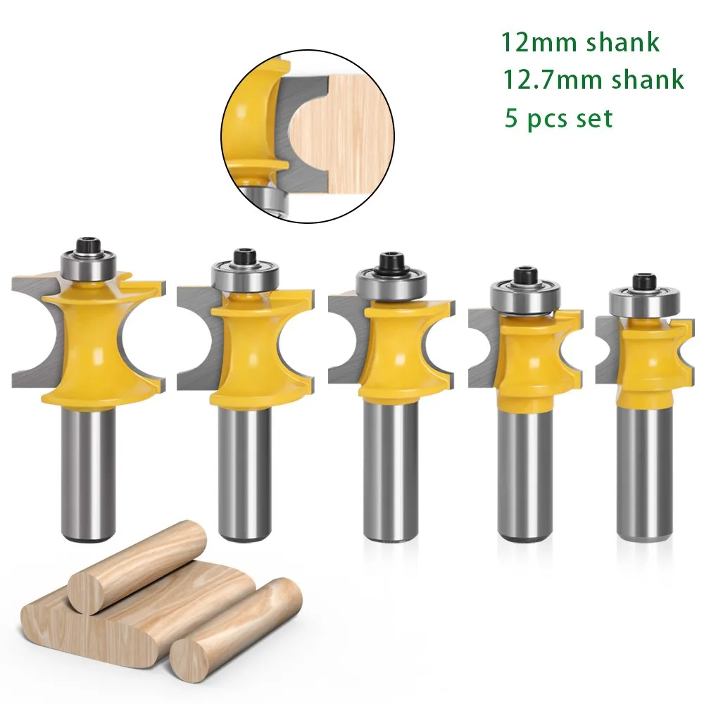 Rundfräser-Set mit Schaft, 5-teilig, Radius-Halbrund-Lagerfräser, Holzfräser, Hartmetall-Bohrwerkzeug für Türen, Tische, Schränke